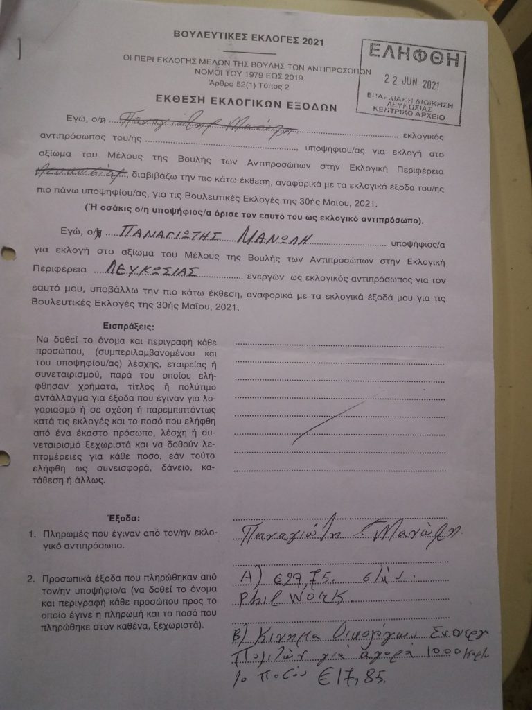 Φρύνη Ονουφρίου Χριστοδούλου: Εκλογικά Έξοδα Βουλευτικών 2021