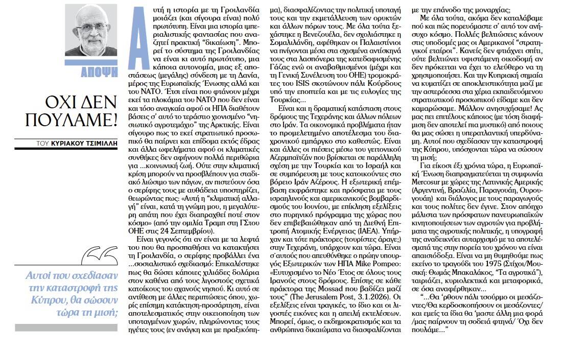 Είναι γεγονός ότι αν είναι με τα λεφτά του που θα προσπαθήσει να κατακτήσει τη Γροιλανδία, ο σερίφης προβάλλει ένα …σοσιαλιστικό σχεδιασμό: Eπικαλέστηκε πως θα δώσει κάποιες χιλιάδες δολάρια στον καθένα από τους λιγοστούς σχετικά κατοίκους του αχανούς νησιού. Κι αυτό σε αντίθεση με άλλες περιπτώσεις όπου, χωρίς επίσημη κατάκτηση-προσάρτηση, είναι αποτελεσματικός στην οικειοποίηση των υποταγμένων χωρών, πληρώνοντας τους ηγέτες τους (εν ανάγκη και με πραξικόπημα), διασφαλίζοντας την πολιτική υποταγή τους και την εκμετάλλευση των ορυκτών και άλλων πόρων τους. Με όλα τούτα ξεχάστηκε η Βενεζουέλα, δεν σχολιάστηκε η Σομαλιλάνδη, αφέθηκαν οι Παλαιστίνιοι να πνίγονται μέσα στα σχισμένα αντίσκηνά τους στα λασπόνερα της κατεδαφισμένης Γάζας ενώ οι αναβαθμισμένοι (μέχρι και τη Γενική Συνέλευση του ΟΗΕ) τρομοκράτες του ISIS σκοτώνουν πάλι Κούρδους υπό την εποπτεία και με τις ευλογίες της Τουρκίας…